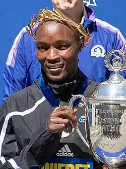 Evans Kiplagat Chebet (born 10 November 1988)[1] is a Kenyan long-distance runner who competes in road races. In 2022, he became the third man this century to win both the Boston Marathon and New York City Marathon.[3] Chebet successfully defended his title at the 2023 Boston Marathon for his third consecutive World Marathon Major victory in a row.[4] He finished third at the 2016 Berlin Marathon.
