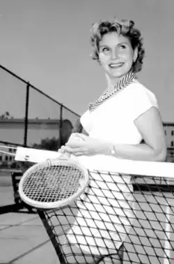 Photograph (right) was taken for "Let's Play Tennis Week" a charity event with stars of that era.