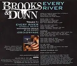"Every River" is a song written by American country music artist Kim Richey along with Angelo Petraglia and Tom Littlefield. First recorded by Richey on her 1997 album Bitter Sweet, it was later covered by duo Brooks & Dunn, who released it as the fifth and final single from the 2001 album Steers & Stripes. It entered the Billboard Hot Country Songs Chart on the week of September 7, 2002. It peaked at number 12 on the week of December 14, 2002.[1] It was more recently covered by "British Invasion" band The Searchers.[2] It was also covered by Irish singer and musician Maura O'Connell, who included it on her 2001 album Walls & Windows.