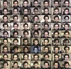 Everyday is an ongoing art project by American photographer Noah Kalina that gained widespread attention when the first segment of the project, Noah takes a photo of himself every day for 6 years, also titled everyday, was released in 2006 and became a viral video.[1][2] The first everyday video features a fast montage of thousands of pictures of Kalina spanning a period of six years all played sequentially as a time lapse.[3] Subsequent releases have followed this format and viewers are able to watch Kalina age.