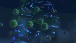 The game was developed by a three-person team, including Damien Quartz, who had assisted OReilly in programming Mountain.[11] With the small team on an experimental game, several simplifications were made. For example, creatures do not have walk cycles but instead simply roll to move. OReilly said such decisions, while breaking the reality of the game are "the most interesting solution to particular problems in order to create a totality" for the work.[4][12][6] Additionally, OReilly considered how these animations were similar to the work done in early days of classical animation, where artists attempted to animate a wide range of objects.[13] The game's idle auto-play mode captured OReilly's idea that nature occurs independently of any human intervention.[4]