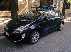 Evo is a carsharing service in Greater Vancouver and Victoria, created by the British Columbia Automobile Association.[1] The company offers exclusively Toyota Prius Hybrid vehicles with roof-top bike racks and features one-way point-to-point rentals.[2] Users are charged by the minute, with hourly and daily rates available.[3] Launched in March 2015, it currently serves most of Vancouver, and selected destinations in neighboring cities.[4] In August 2021, the service was brought to Victoria.[5] The company is considering moving into the Tri-Cities area in the future.[6]