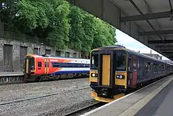 On 2 July 1984 the entrance from New North Road was reopened, and later a new ramped footbridge was installed to give direct access from there to the east end of both platforms.[4] Sectorisation in the 1980s saw Exeter Central become the most westerly station managed by Network SouthEast but it was later transferred to Regional Railways sector which operated the services to Exmouth. Privatisation therefore saw it pass to Wales & West and then Wessex Trains.