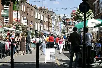 Exmouth Market is a semi-pedestrianised street in Clerkenwell in the London Borough of Islington, and the location of an outdoor street market of 32 stalls.[1]