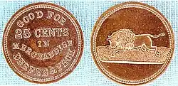 - ^ a b Rulau, Russell. Standard Catalog United States Tokens 1700-1900.