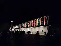 Empowering Lives | An ice cube-shaped structure designed by MORF Inc. in reference to Gabriel García Márquez's novel One Hundred Years of Solitude (which features an "ice house").[55][56] The building has a facade of backlit, translucent polycarbonate panels and an internal steel frame,[55] with interior decorations resembling the Colombian landscape.[56] | |