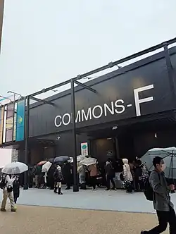 These pavilions are located inside one of the Commons buildings, with each commons buildings assigned the letters A to F. However, due to changes in participating countries and regions, the commons E building is currently unused with no clear plans to use them.[92][93]