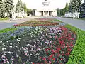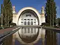 The Expocenter of Ukraine (VDNG) (Ukrainian: Експоцентр України (ВДНГ)), originally known as Exhibition of Achievements of the National Economy of Ukrainian SSR (Ukrainian: Виставка досягнень народного господарства УРСР) or VDNH of Ukrainian SSR (Ukrainian: ВДНГ УРСР), is a permanent multi-purpose exhibition complex in the Teremky neighborhood of Kyiv, Ukraine. Located on the outskirts of the Holosiiv Forest, a large portion of which has been converted into a park zone, the expo specializes in demonstrating Ukrainian achievements in the sphere of industry, science etc.
