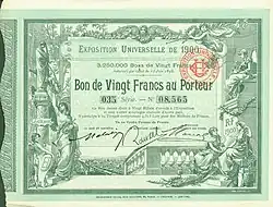 - ^ This includes six world expositions (in 1855, 1867, 1878, 1889, 1900 and 1937), two specialized expositions (in 1881 and 1925) and two colonial expositions (in 1907 and 1931).