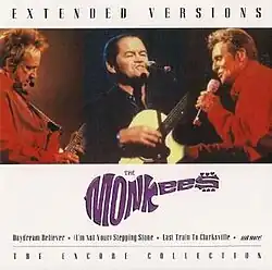 Extended Versions is a 2003 live album by the Monkees recorded during their 35th Anniversary Tour in 2001. It features three of the original Monkees; Micky Dolenz, Davy Jones and Peter Tork.[2] The CD-only album includes live versions of several of the band's hit songs including "Last Train to Clarksville", "Daydream Believer", and "I'm a Believer".