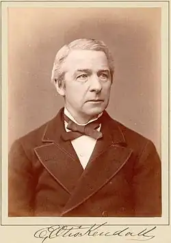 Kendall was born on May 17, 1818, in Wilmington, Massachusetts to parents Ezra Kendall and Susanna Cook Walker.[2][3] His mother was a descendant of Mayflower passengers Francis Cooke and Stephen Hopkins.[4] In 1835, he moved to Philadelphia to study mathematics with Sears Cook Walker, his half-brother. In 1838, he became professor of mathematics and astronomy at Philadelphia's Central High School and director of the observatory.[1][5] In 1842, he was elected a member of the American Philosophical Society and later served as a vice-president.[1] In 1855, he became professor of mathematics and astronomy at the University of Pennsylvania. In 1883, he became vice-provost and dean of the college faculty.[5] He received a Doctor of Laws, LL.D., honorary degree from the university in 1888 for his scientific work.[1] He died on January 5, 1899, in Philadelphia and is buried in the Saint Luke's Episcopal Churchyard.[1]