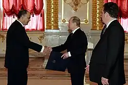 - ^ "Vladimir Putin accepted letters of credential from the new ambassadors of several foreign states". The Kremlin, Moscow: Presidential Press and Information Office. 13 April 2006. Retrieved 2008-10-07.