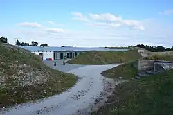 Sweden's capacity to protect its neutrality was questioned after the Crimean War 1854–56. England and France persuaded Sweden to fortify the inlet at Fårö with artillery batteries and naval mines. The fortress was built from 1885 to 1886 and consisted of three fixed batteries; Central Battery (batt. I), Northern Battery (batt. II) and Southern Battery (batt. III). At the turn of the century, the batteries were reconstructed. The batteries I and II were given modern quick-firing 57 mm guns, four per battery.[1] Fårösund Fortress, which was name of the coastal position from 1915, was disbanded as such on 30 September 1919, and the coastal artillery detachment was relocated to Vaxholm Fortress[2] and all equipment was removed.[1] After the fortress was closed down and was taken over by the Swedish Prison and Probation Service in 1919, a penitential center was establishment. The fortress had been proposed as a detention center for social dangerous offenders, if and when legislation for such came about.[3] No such laws did arise and the entire fortress was declared a listed building in 1935.[1]