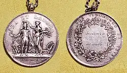 The origin of the Fête des Vignerons lies in the processions of the Vevey Confrérie des Vignerons. These processions are believed to have started in the Middle Ages.[9] At that time, the Confrérie des Vignerons was called the Abbaye de l'Agriculture.[9] In 1647 the Abbaye de l'Agriculture was only a small association. It grew during the 18th century and by 1776 almost a quarter of Vevey's male population had become members. It was never a gathering of vineyard workers, as its current name would suggest, but of landholders who entrusted the care of their vineyards to those workers.[10] A small group of experts from the Confrérie visited the vines at different times of year to judge and classify the quality of work of the winegrowers, an activity that continues to this day. The Abbot-Presidents (presidents of the council of the Confrérie) were, and still are, most often members of the City Councils, lawyers, notaries or judges.[3]