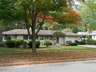 F.W. Lewis was an accountant at the Dow Chemical Company. In 1933, he hired architect Alden B. Dow to design this home. It was Dow's first foray into a low-priced home design, something that interested the architect throughout his life. Clapboard siding was added to the house some time in the 1960s. A single car garage was added about the same time.[2]
