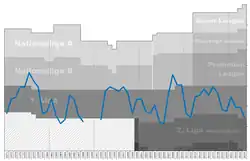 However, the last second-level membership of FC Gossau so far (season 1996/97) lasted merely one season. While heading the table after the fifth matchday, the team afterwards fell back to the second-last place until winter break. Neither a change of manager nor the engagement of several new players could prevent their relegation. Thereafter, FC Gossau played with changing successes in the 1. Liga until 2006/2007 when they managed to reach the promotion again.