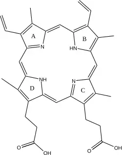 3. ^ Leeper, F. J. (1985). "The biosynthesis of porphyrins, chlorophylls, and vitamin B12". Natural Product Reports. 2 (1): 19–47. doi:10.1039/NP9850200019. PMC 11366113. PMID 3895052.