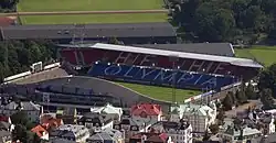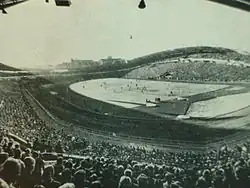 The Råsunda Stadium was expanded from 38,000 for the World Cup by building end stands.[12] Organising committee chairman Holger Bergérus mortgaged his house to pay for this.[12] The new Malmö Stadion was built for the World Cup, replacing the 1896 Malmö Stadion at a new site.[13] The Idrottsparken had 4,709 seats added for the World Cup. The Social Democratic municipal government refused to pay for this until the organisers threatened to select Folkungavallen in Linköping instead.[14] At the Rimnersvallen, a stand from the smaller Oddevallen stadium was moved to Rimnersvallen for the World Cup. The crowd at Brazil v. Austria was estimated at 21,000, with more looking in from the adjoining hillside.[12] The most used stadium was the Råsunda Stadium in Stockholm, which hosted 8 matches, including the final, followed by the Ullevi Stadium in Gothenburg (the biggest stadium used during the tournament), which hosted 7 matches. The Malmö Stadium hosted 4 matches, Norrköping hosted 3 matches; Borås, Halmstad, Helsingborg, Västerås, and Sandviken hosted 2 matches each, and Örebro, Eskilstuna, and Uddevalla each hosted 1 match.