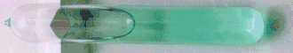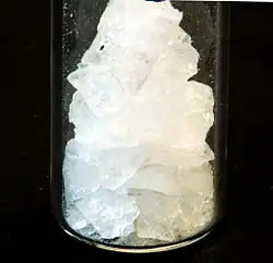 Its volumetric heat capacity, 4540 kJ/(m3·K), is similar to that of water, more than four times that of sodium, and more than 200 times that of helium at typical reactor conditions.[1] Its specific heat capacity is 2414.17 J/(kg·K), or about 60% that of water.[2] Its appearance is white to transparent, with crystalline grains in a solid state, morphing into a completely clear liquid upon melting. However, soluble fluorides such as UF4 and NiF2, can dramatically change the salt's color in both solid and liquid state. This made spectrophotometry a viable analysis tool, and it was employed extensively during the MSRE operations.[3][4][5]