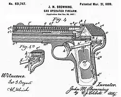 - ^ According to the Browning Firearms Museum, see https://i.imgur.com/X6Pn4BX.jpeg; U.S. patent 621,747 was only applied for in December 1897