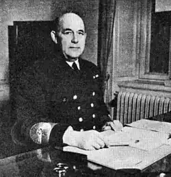 On 13 October 1921, he became head of the Royal Swedish Naval Academy, a position he held until 1925. He was promoted to commander on 16 February 1923 and became head of a department in the Naval Staff from 1926 to 1929. Promoted to captain on 11 February 1927, he formally assumed the position on 1 June 1928. He was a member of the defence inquiry in 1928 and 1929, and served as flag captain in the Commander-in-Chief of the Coastal Fleet's staff from 1930 to 1931. On 15 April 1931, he was appointed head of the Military Office of the Naval Defence (Sjöförsvarets kommandoexpedition). In 1932, he served as an expert at the World Disarmament Conference in Geneva. Promoted to rear admiral on 27 January 1933, he officially assumed the role in the navy on 15 April 1933 and, that same year, became Commander-in-Chief of the Coastal Fleet.[1] Tamm was appointed Chief of the Navy and promoted to vice admiral on 20 January 1939 and succeeded Vice Admiral Charles de Champs on 1 April the same year with an appointment until 31 March 1945.[4] He was appointed admiral in the reserve in 1947, two years after he left active service.