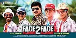 Face to Face (Titled as Face 2 Face) is a 2012 Malayalam-language crime film film directed by V. M. Vinu and starring Mammootty, Siddique, Kalabhavan Mani, Ragini Dwivedi and Roma Asrani. The film was written by Manoj Payyanur and produced by M. K. Nazar under the banner of Good Line Productions. It was released on 13 November 2012 during Deepavali alongside My Boss and 101 Weddings.