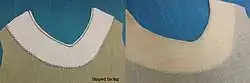 In sewing and tailoring, facing is a small piece of fabric, separate or a part of the garment fabric itself, used to finish the fabric edges. This is distinguished from hemming which simply folds the edge over; facing is (or appears to be) a more substantial layer of additional fabric added to the edges of the garment. The facing adds addition support, strength and prevents stretching. Facing makes a garment look professionally finished with the seams well hidden inside the folds of the facing. Facing is mostly used to finish the edges in necklines, armholes, hems and openings. They are also used widely in all other sewing like quilts and home decor items like curtain hems.