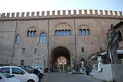 Palazzo del Podestà, opposite the municipal palace, represented the third power alongside the Lordship (Palazzo Manfredi) and the People (the Piazza). Historical records suggest it was completed in 1175, with the staircase leading to the upper floor demolished in 1270 to make way for the balcony known as the "arengario," from which speeches were delivered to the public.[37] The recently restored "Arengo" hall was part of a municipal redevelopment project. The Romanesque windows and Ghibelline merlons remain intact. Palazzo del Podestà