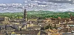 Faenza's urban history, like that of many other Emilia-Romagna cities, unfolds through a continuous process of regeneration from its original Roman structure. While this structure was significantly altered in some cases, it persists in the city's geometric layout.[30] The urban fabric, heavily impacted by wartime destruction, retains numerous examples of Renaissance and Baroque architecture, primarily concentrated in the city center, but is predominantly characterized by 18th- and 19th-century Neoclassical features due to significant building transformations led by architects Giuseppe Pistocchi, Giovanni Antonio Antolini, and Pietro Tomba. These efforts positioned Faenza as a leading center of Neoclassicism in Europe.[13]