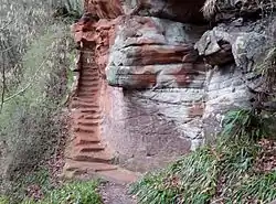 The betrothal of the poet Robert Burns and "Highland Mary" (Mary Campbell) is said to have taken place here in 1786[4] or at nearby Coilsfield.[5] In 1921, local Freemasons erected a memorial stone to commemorate this event.[6] By 1895 the ford is no longer shown.[7]