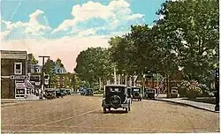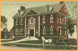 Fairfield Beach, in a 1921 postcardPost Road, in Fairfield Center, in a 1934 photo1910 postcard showing Fairfield LibraryFairfield Community Theater, building shown on the right in this 1938 postcard, is now operated by Sacred Heart University