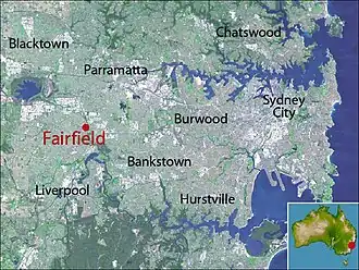 Fairfield is a suburb of Western Sydney, in the state of New South Wales, Australia. Being in the centre of the Cumberland Plain, Fairfield is located 30 kilometres (19 mi) west of the Sydney central business district and is the administrative heart of the Fairfield City Council (local government area) – despite a very small portion of it belonging to the Cumberland Council. Fairfield supports a mixture of commercial and residential developments, mostly characterised by medium-density buildings and some new high-rise apartments.