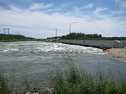 Regulation of Lake Manitoba dates back to the late 1890s and in 1961 the dam on the river, the Fairford River Water Control Structure (FRWCS) was completed to control outflows. The 1961 works also included widening and deepening of the channel, particularly between Lake Manitoba and the dam, more than tripling the capacity when the lake is at a level of 248 metres (813 ft) above sea level.[1][2]