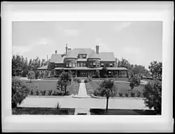 In 1889 Jones built a Victorian-style mansion as his family's residence, and named it Miramar, Spanish for "view of the ocean".[1] His wife, Georgina, planted a rose garden near the house, and also planted trees along Santa Monica's streets.[3] After John P. Jones died in 1912, his widow sold the family's mansion to King Camp Gillette, inventor of the safety razor, who leased the estate to a military academy at the end of World War I.