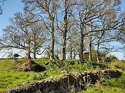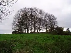 Fairy forts (also known as lios or raths from the Irish, referring to an earthen mound) are the remains of stone circles, ringforts, hillforts, or other circular prehistoric dwellings in Ireland.[1] From possibly the late Iron Age to early Christian times, people built circular structures with earth banks or ditches. These were sometimes topped with wooden palisades and wooden framed buildings. As the dwellings were not durable, only vague circular marks often remained in the landscape.[2] The remains of these structures, in conjunction with the vegetation around them,[3] are associated with local traditions and folklore, perhaps involving fairies or other supposed supernatural entities, who would "defend" the structures from destruction by builders or farmers.[4]