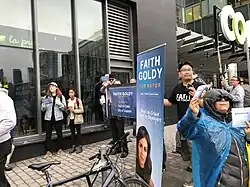 On July 27, 2018, Goldy registered to run for Mayor in the 2018 Toronto election.[48] Her campaign platform included monitoring the finances of Toronto's Islamic centres and mosques, putting illegal immigrants on buses to either the prime minister's residence or a willing jurisdiction, and banning parades that do not welcome the participation of the Toronto Police Service.[49] Goldy finished a distant third in the race, winning 3.4% of voters.[50]