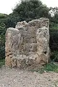Rescue excavations at the cemetery of Falasarna began in 1966 directed by the Ephor of the Department of Classical Antiquities in Chania, Dr. Yannis Tzedakis,[25] and continued under Vanna Niniou-Kindeli. Over 70 graves were uncovered, some of them pithos burials, and others cist graves. The early excavations were important, proving the site to have been inhabited in the 6th century BC. Since then, a small additional part of the cemetery has been excavated and many beautiful artifacts have been recovered, among them a 4th-century pelike showing Eros chasing a Maenad. In the area of the necropolis there stands a two-meter high throne carved from stone, probably dedicated to the Phoenician goddess Astarte.[26]