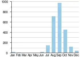 Average monthly flow (m3/s) at the Kidira hydrometric station over the period 1904-1984[1]