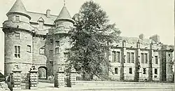 To address the poor state of the garden and park, James V appointed a new Captain and Keeper, William Barclay, Master of Rhynd, in March 1527.[32] The Queen's Chamber was hung with tapestry for Margaret Tudor in September 1534.[33] James V extended his father's buildings in French renaissance style from 1537. He arranged to build a Royal Tennis Court and bowling alley in the garden in 1541.[34] The tennis court was called a caichpule in Scots and the game was known in French as jeu de paume.[35] Mary was said to have scandalised the people of Scotland by wearing men's breeches to play the game.