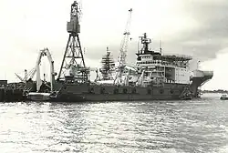 • Stena Seaspread 6,061 GRT – diving vessel, oilfield support ship equipped with helicopter pad and used as repair ship from 16 May.[8][38] "Quote": Supreme effort to prepare fleet for battle: Not for the first time has the versatility and technological capability of the offshore support fleet astounded the military - it only comes as a surprise to those not familiar with the offshore oil industry and the demands it places on ships and those crewing them, that the navies of the world do not have the same level of technology available and their personnel often lack the same levels of skills and experience. Most noteworthy was the MSV Stena Seaspread, a refitted diving and maintenance vessel which was taken to the Falklands to act as a floating workshop for the warships. During the period of hostilities the MSV Stena Seaspread carried out damage and other repairs in mid-ocean to more than 50 ships, including 10 warships and 4 captured vessels.[39]