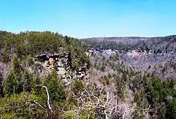 - Rocky Point Overlook, located just off the Gorge Trail on an exposed cliff, looks northward across the Cane Creek Gorge.