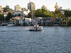 False Creek Ferries, a division of Granville Island Ferries Ltd,[3] is a privately owned and operated ferry service that operates on False Creek near downtown Vancouver, British Columbia, Canada. The False Creek Ferry fleet has grown from the four electric ferries that formed the company to a fleet that now consists of 17 ferries divided into three classes; the 20-passenger Balfry class, the 12-passenger Spirit class, and the open-deck Novel class. The service operates every day of the year, except Christmas Day and Boxing Day.