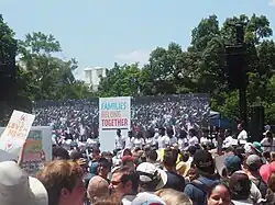 Families Belong Together refers both to an advocacy campaign devoted to reuniting immigrant families that were separated at the US-Mexico border by a Trump administration policy introduced in spring 2018, and also specifically to a series of protests on June 30, 2018 in Washington, D.C., New York City, and 700 other cities and towns in the United States. Very large crowds turned out to those events despite heat waves in many areas, including in Washington, D.C.[1][2][3][4]