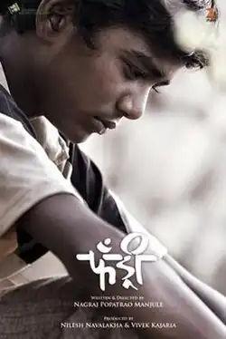Fandry (The Pig)[a] is a 2013 Indian Marathi-language film, written and directed by Nagraj Manjule[4] in his directorial debut. It stars Somnath Awghade, Suraj Pawar, and Rajeshwari Kharat. The story focuses on a young boy's love amidst caste-based discrimination. The film, set in Akolner, a village near Ahmednagar, revolves around the issue of discrimination in India's caste system and narrates the story of a teenager from a Dalit family who lives at the village fringe, and falls in love with an upper-caste girl.[5][6]