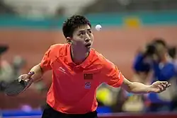 Fang Bo (Chinese: 方博; pinyin: Fāng Bó; born November 6, 1992) is a Chinese male table tennis player.[4] In 2002, Fang Bo became a member of the Shandong Luneng table tennis club. In 2009, he joined the China national table tennis first team. In the same year December 2009, he won all four team and individual titles at the 2009 World Junior Championships,[5] becoming the first youth player to accomplish this feat in China. At his peak in 2015, he reached the men's singles final at the World Championships by defeating the second-seeded Xu Xin and the defending champion Zhang Jike. Fang Bo then obtained his first world table tennis champion title in 2016 during the World Team Table Tennis Championships. In 2017, he partnered with Petrissa Solja of the German table tennis team and won bronze in the mixed doubles at the World Championships in Düsseldorf, Germany. Fang Bo was ranked fifth in the China National Table Tennis (First) Team after emerging as first runner-up of the 2018 China National Table Tennis Championships. In 2019, Fang Bo successfully led his teammates and Team Tian Jin to win the overall team gold medal in the 2019 China Super League. Concomitantly, Fang Bo represented UMMC at the ETTU Table Tennis Champions League and the team came in second after losing 2:3 to Fakel Gazprom Orenburg in the final leg.