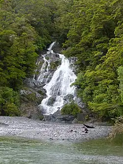 Fantail Falls is a waterfall in Mount Aspiring National Park, Westland District, New Zealand.