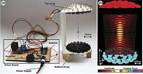 - ^ a b Polychronopoulos, Spyros; Memoli, Gianluca (December 2020). "Acoustic levitation with optimized reflective metamaterials". Scientific Reports. 10 (1): 4254. Bibcode:2020NatSR..10.4254P. doi:10.1038/s41598-020-60978-4. ISSN 2045-2322. PMC 7060201. PMID 32144310.