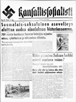 In Finland, the far-right (Finnish: Äärioikeisto) was strongest in 1920–1940 when the Academic Karelia Society, Lapua Movement, Patriotic People's Movement (IKL) and Vientirauha operated in the country and had hundreds of thousands of members.[1] In addition to these dominant far-right and fascist organizations, smaller Nazi parties operated as well.