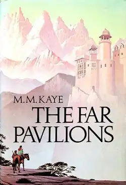 The Far Pavilions is an epic novel of British-Indian history by M. M. Kaye, published in 1978, which tells the story of a British officer during the British Raj. There are many parallels between this novel and Rudyard Kipling's Kim that was published in 1900: the settings, the young English boy raised as a native by an Indian surrogate mother, "the Great Game" as it was played by the British Empire and Imperial Russia. The novel, rooted deeply in the romantic epics of the 19th century, has been hailed as a masterpiece of storytelling. It is based partly on biographical writings by the author's grandfather, as well as her knowledge of and childhood experiences in India. It has sold millions of copies, caused travel agents to create tours that visited the locations in the book, and inspired a television adaptation and a musical play.[1]