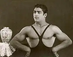 Mohammad-Ali Fardin (Persian: محمدعلی فردین, 4 February 1931 – 6 April 2000) was a prominent Iranian actor, film director and freestyle wrestler and was the runner-up in world wrestling. [1] He started his film career in the late 1950s and was a big star of Iranian cinema for two decades from the 1960s onwards. He was mostly famous for portraying masculinity and chivalry in Persian films. The undisputed box office champion of the era, Fardin captivated millions of viewers in his 25-year career. Between 1961 and 1976, he acted in the most popular movies of the year in Iranian cinema. He was active in wrestling and won a silver medal in the 1954 World Championship. He then started his first professional appearance in the cinema with the invitation of Ismail Kushan by playing a role in Cheshme Ab Hayat (1959). Soltane Ghalbha, Alley of Men, Ganj-e Qarun, Midnight Cry, Mr. 20th Century, The Secret of the Elder Tree, The Waiting Beach, Baba Shamal, The Rendezvous of Khashm, The Crookes (film), Ayyub, Barzakhi, Hell + Me, and Jabar the corporal escapes are some of his prominent films. Fardin's popularity as an actor is mainly due to the characters he has portrayed in his films.